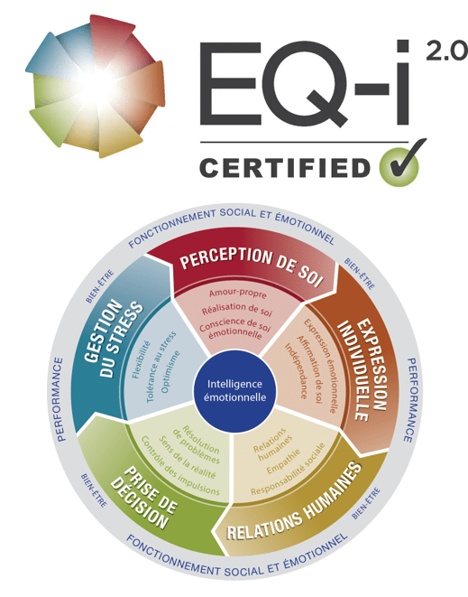 L’outil EQ-i 2.0 permet d’évaluer le quotient émotionnel, et plus spécifiquement l’équilibre entre les différentes compétences ou aptitudes émotionnelles. Il me permet ainsi de construire un programme d’accompagnement spécifique pour chacun, que ce soit en coaching, en équicoaching et/ou avec l’hypnose.